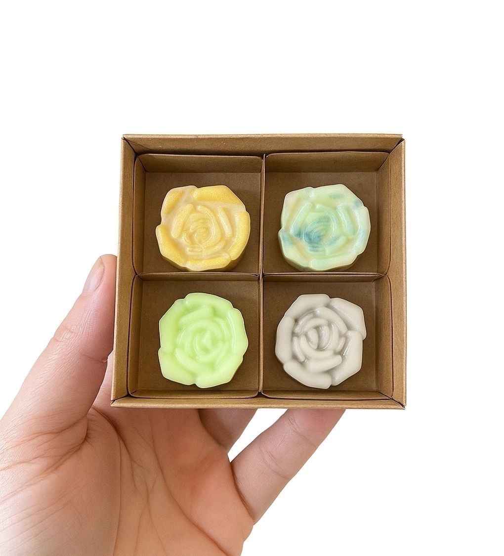 Os wax melts vão em caixinha kraft reciclável com tag de orientações. Perfeito para presentear!