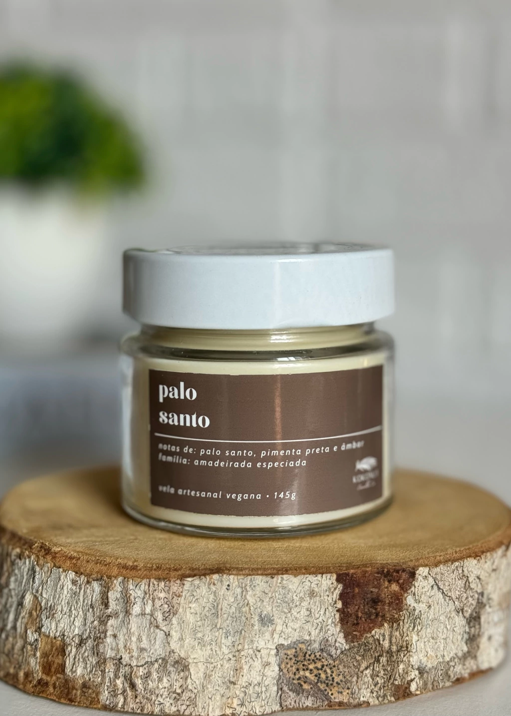 A nossa vela palo santo possui fragrância amadeirada. Com notas de palo santo, pimenta preta e âmbar, sua fragrância traz equilíbrio, proteção e um toque de mistério ao seu espaço. Purifique a energia ao seu redor e transforme seu ambiente em um refúgio de bem-estar.